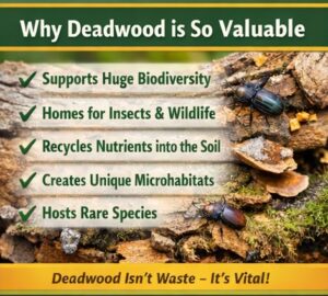 - Dead wood becomes a habitat for thousands of species